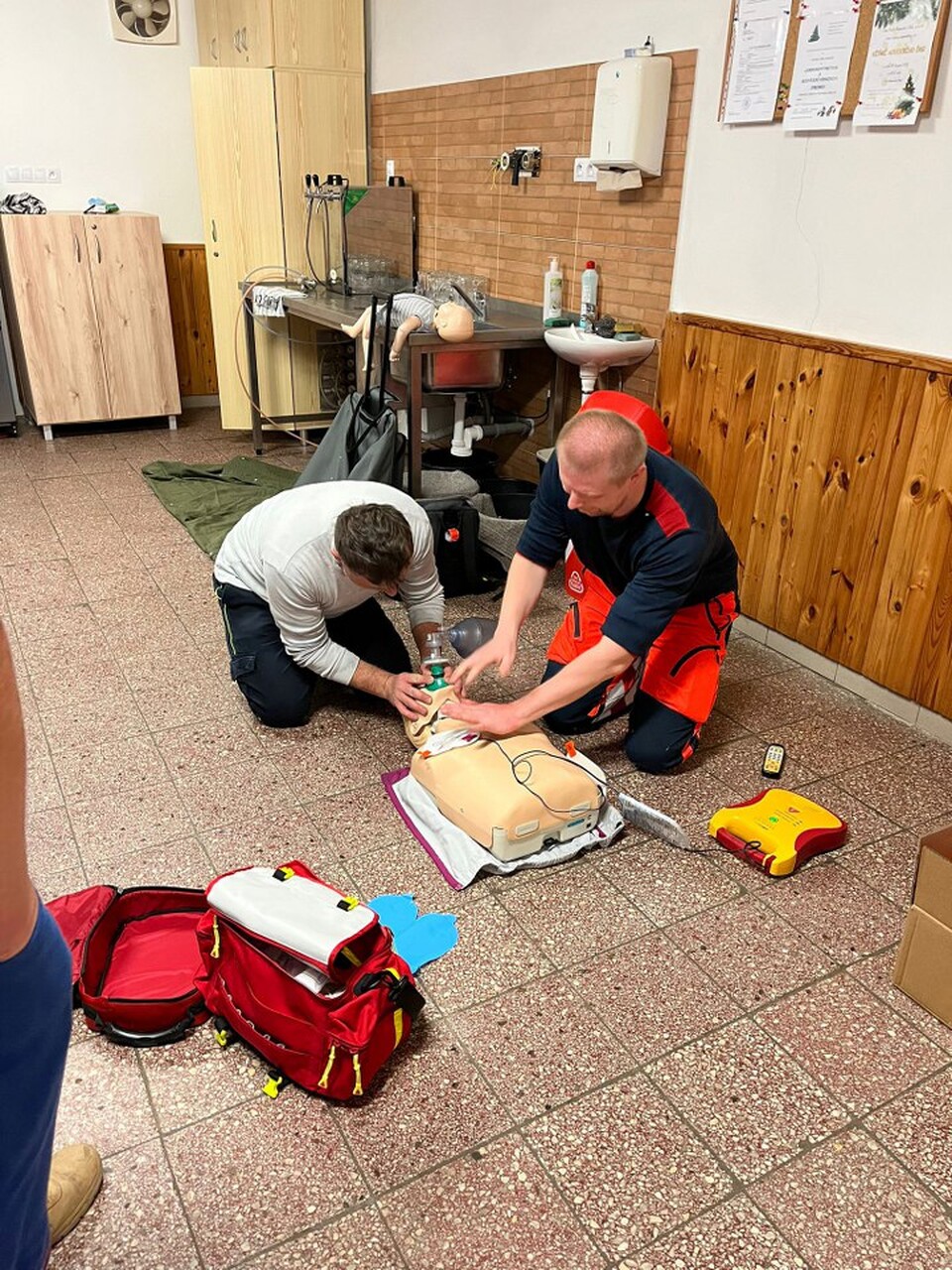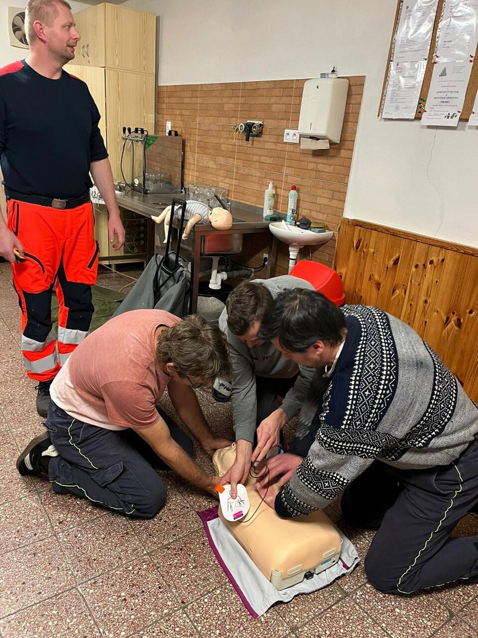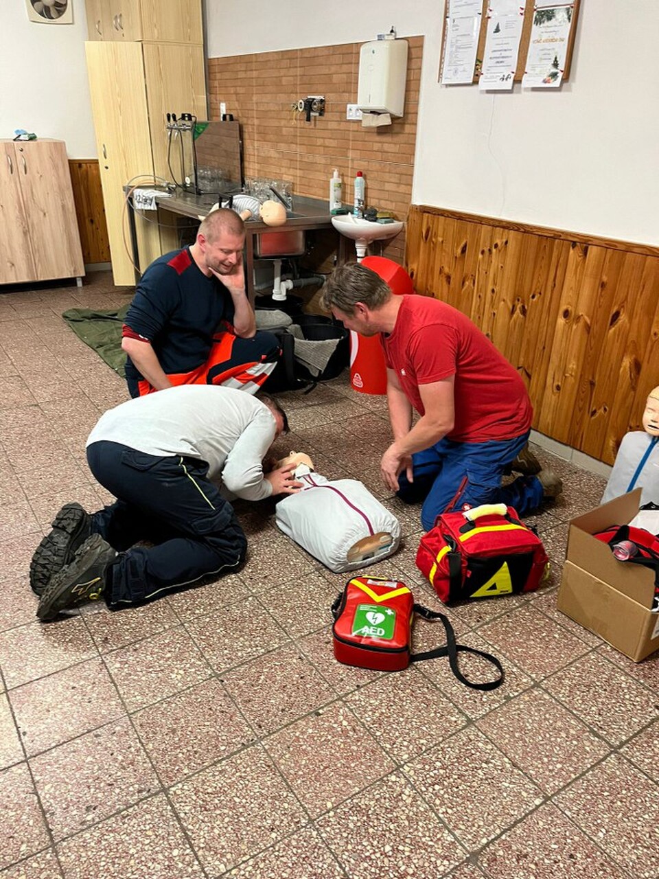 V pondělí 8. prosince se jednotka JPO V Pustá Kamenice zúčastnila školení s názvem programu "Proškolený poskytovatel první pomoci na vyžádání - first respondent", jenž navazoval na loňský kurz. Profesionální lékař z rychlé záchranné služby nás v kulturním domě v Pusté Kamenici proškolil s používáním přístroje AED, který je umístěn i na budově našeho obecního úřadu. Předvedl nám, jak správně postupovat při různých situacích, které jsme si mohli osobně vyzkoušet na figurínách a připravených stanovištích. Školení bylo velmi poučné a zároveň všichni doufáme, že přístroj v naší obci nebude nikdy potřeba použít.